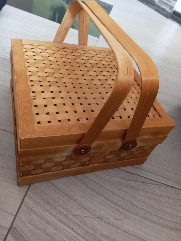 Kotak hampers polosan ini terbuat dari bambu yang dianyam. Kami menggunakan bahan dari alam dengan konsep eco green sebagai upaya untuk mengurangi sampah plastik.